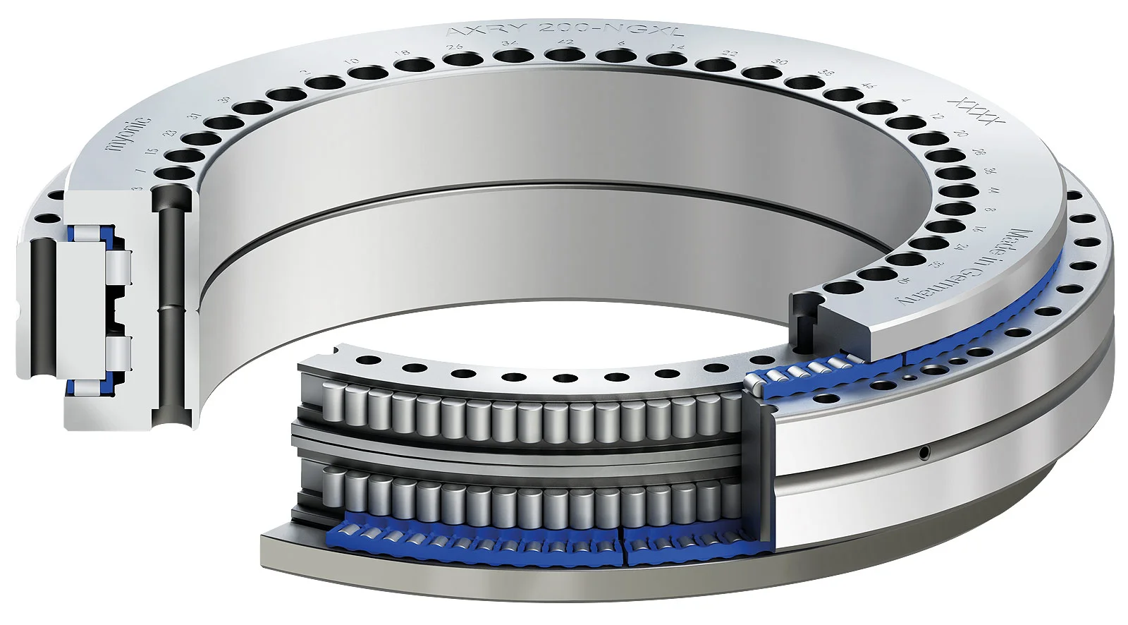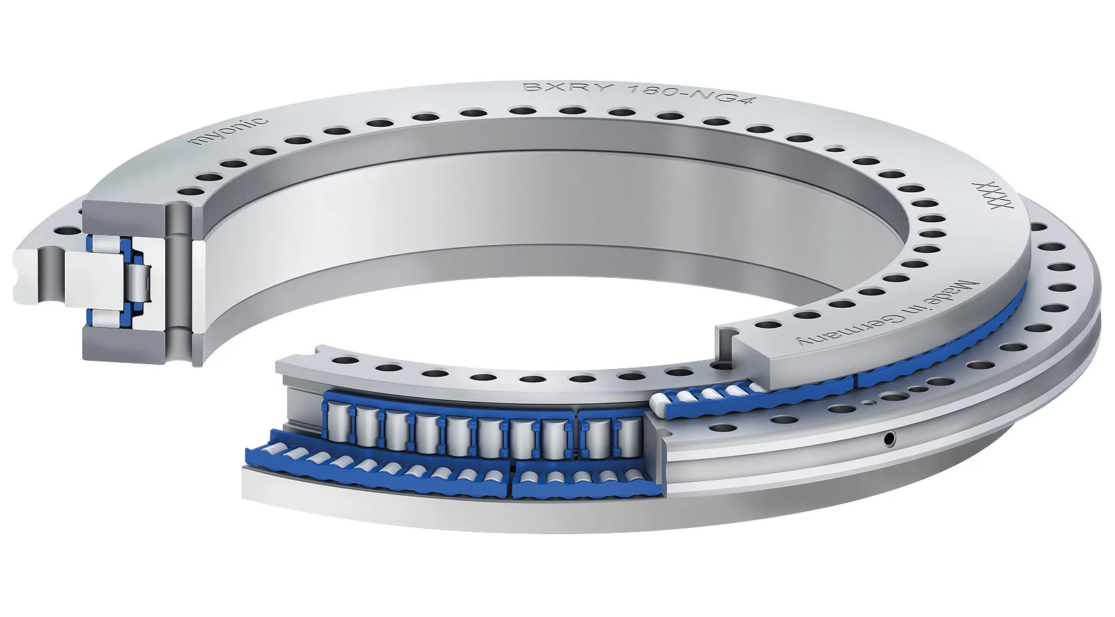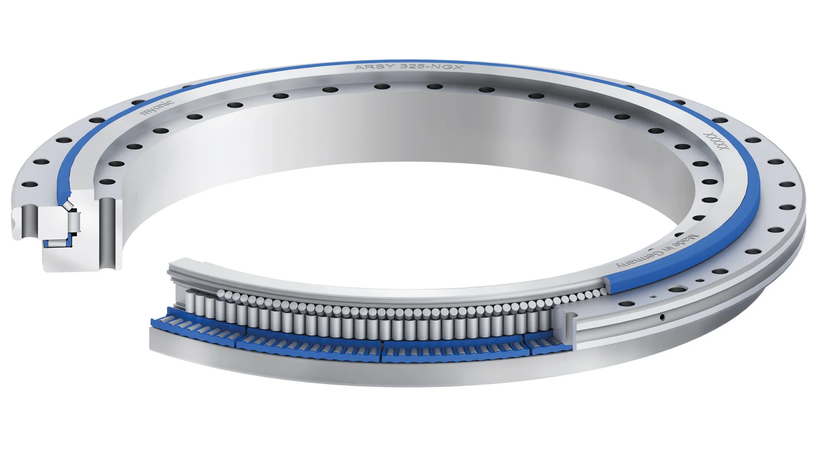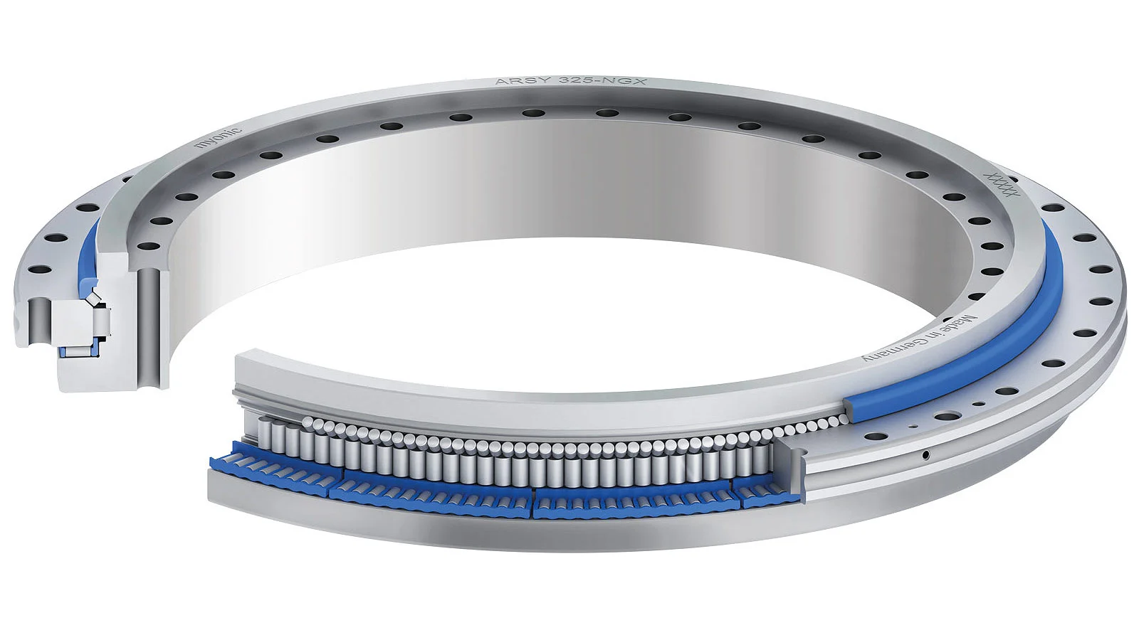 AXRY-EX Lager sind zweiseitig wirkende, anschraubbare und einbaufertige Präzisionslagereinheiten für hochsteife Anwendungen, beispielsweise Rundtische oder Fräsköpfe. Das Lager nimmt spielfrei sowohl beidseitig Axial- und Radialkräfte als auch Kippmomente auf. AXRY-EX Lager sind für Fett- und Ölschmierung geeignet und auf maximale Steifigkeit ausgelegt.