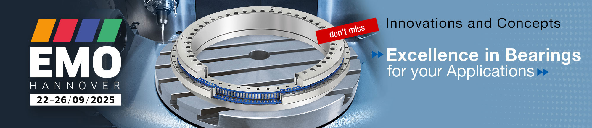 From Monday, 22 to Friday, 26 September 2025, our engineers and technicians will be presenting the myonic precision bearings for swivel and rotary axes.