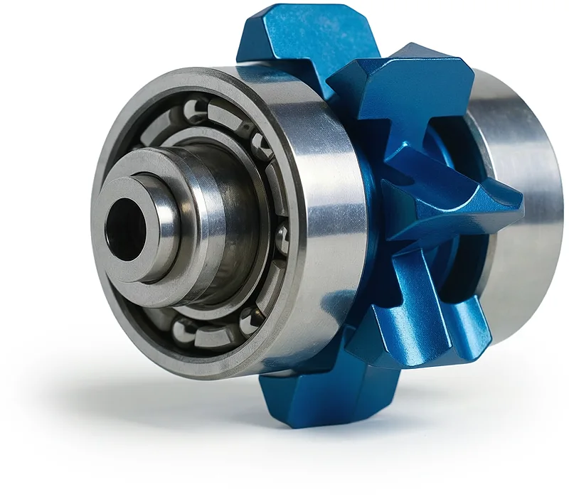 In Verbindung mit dem ebenfalls im Hause myonic hergestellten Rotor entsteht die ideal abgestimmte Turbineneinheit, die im Instrument ohne weitere Anpassungen eingebaut werden kann.